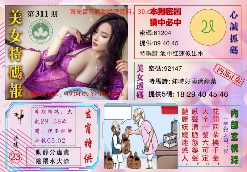 赚钱就需要一份好料,精准公式计算,赌彩必备绝对极品,实实在在让你稳赚!最好的资料都是要斟酌再斟酌,大家敬请关注网站更新!